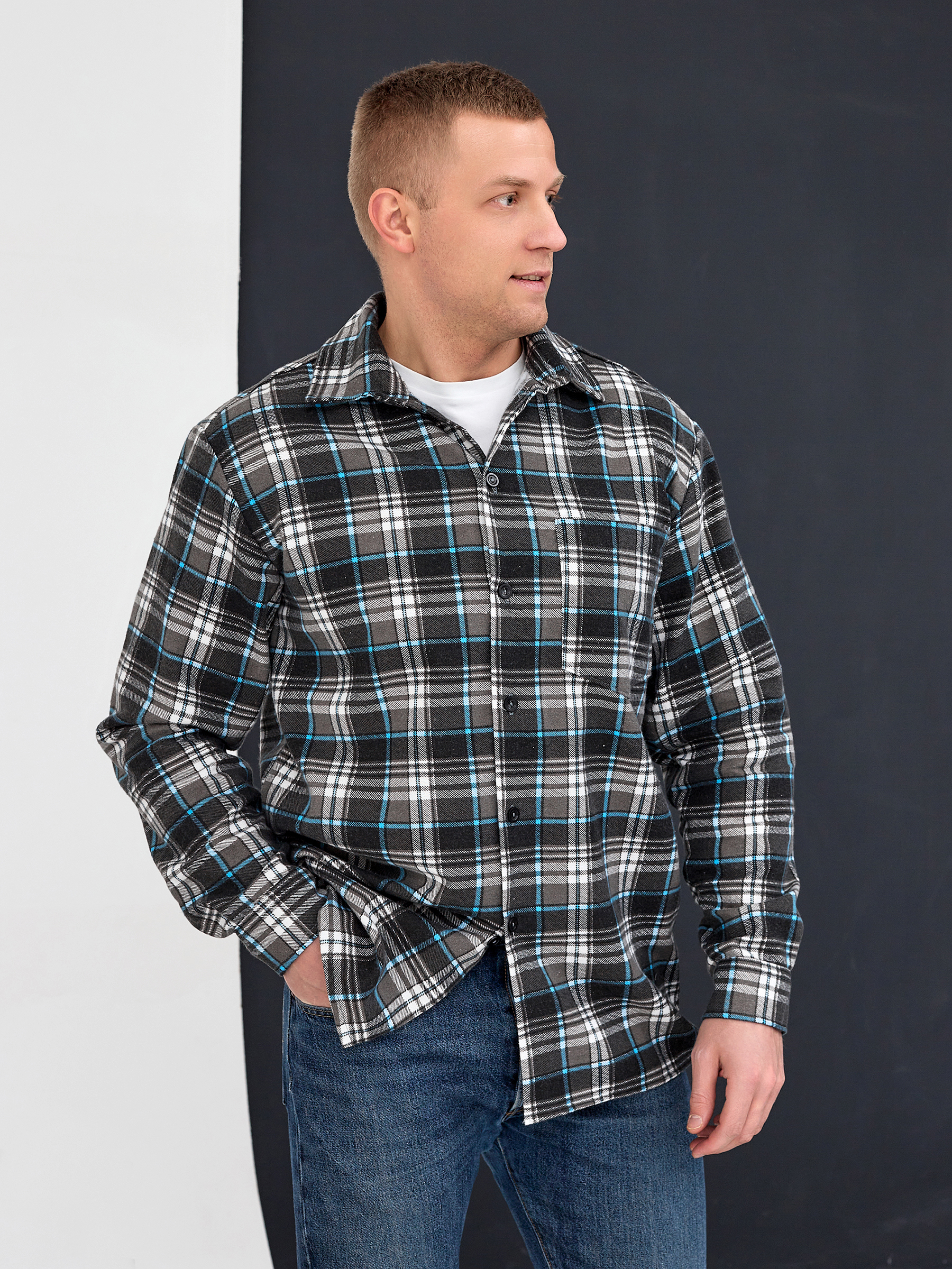 Рубашка фланелевая больших размеров на пуговицах.