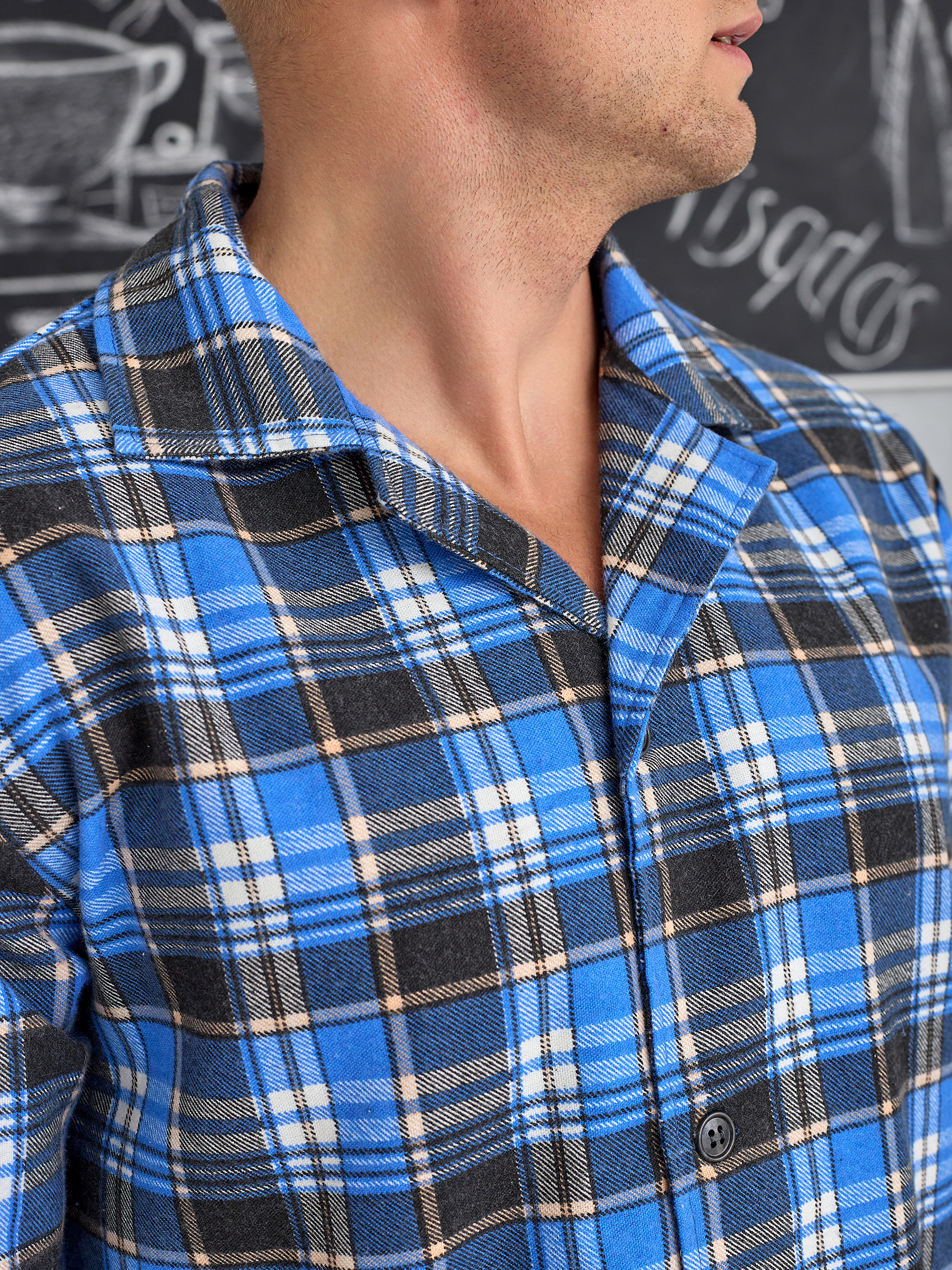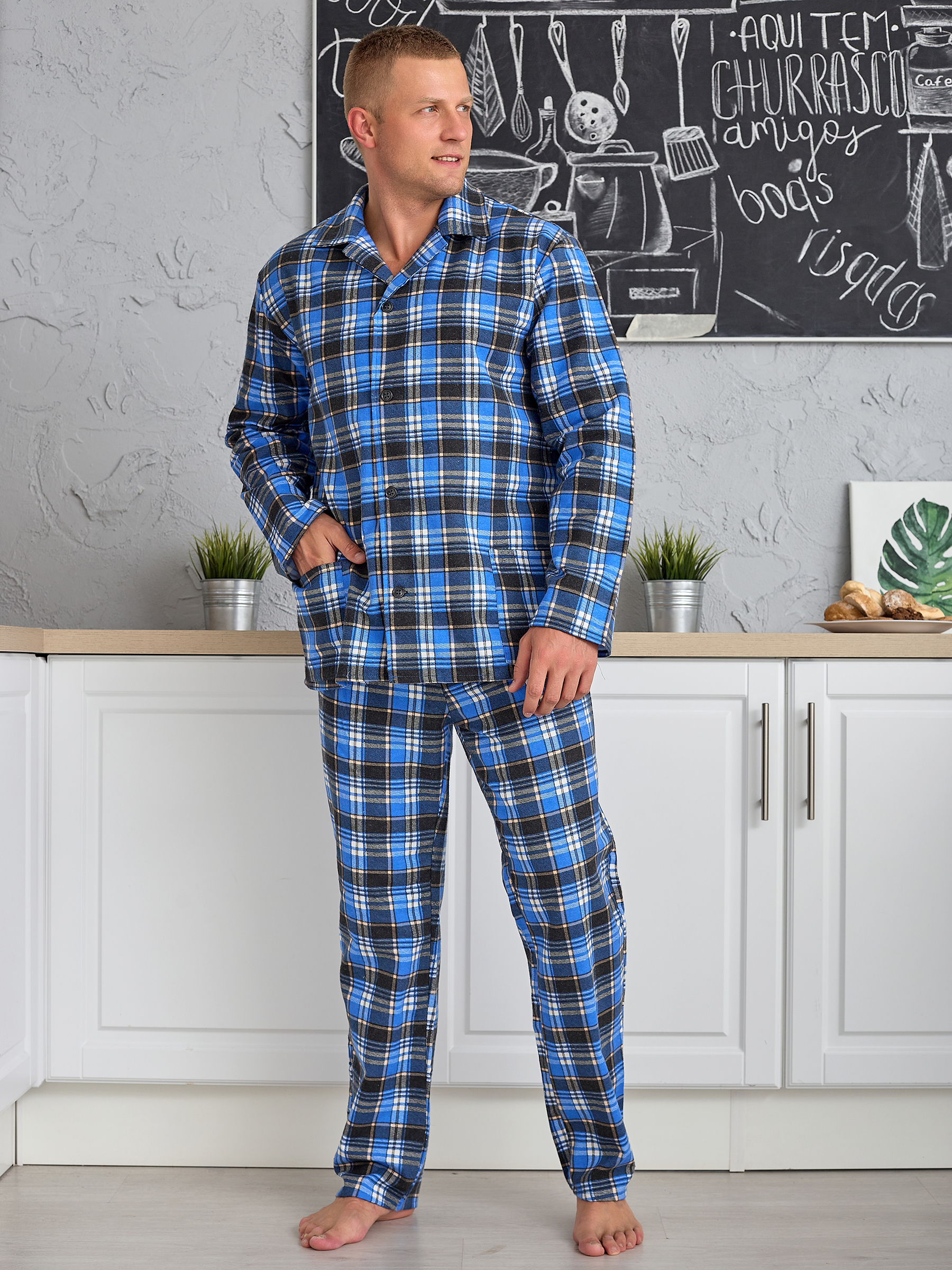 Фланелевая байковая мужская пижама со штанами выполнена из 100% хлопка.