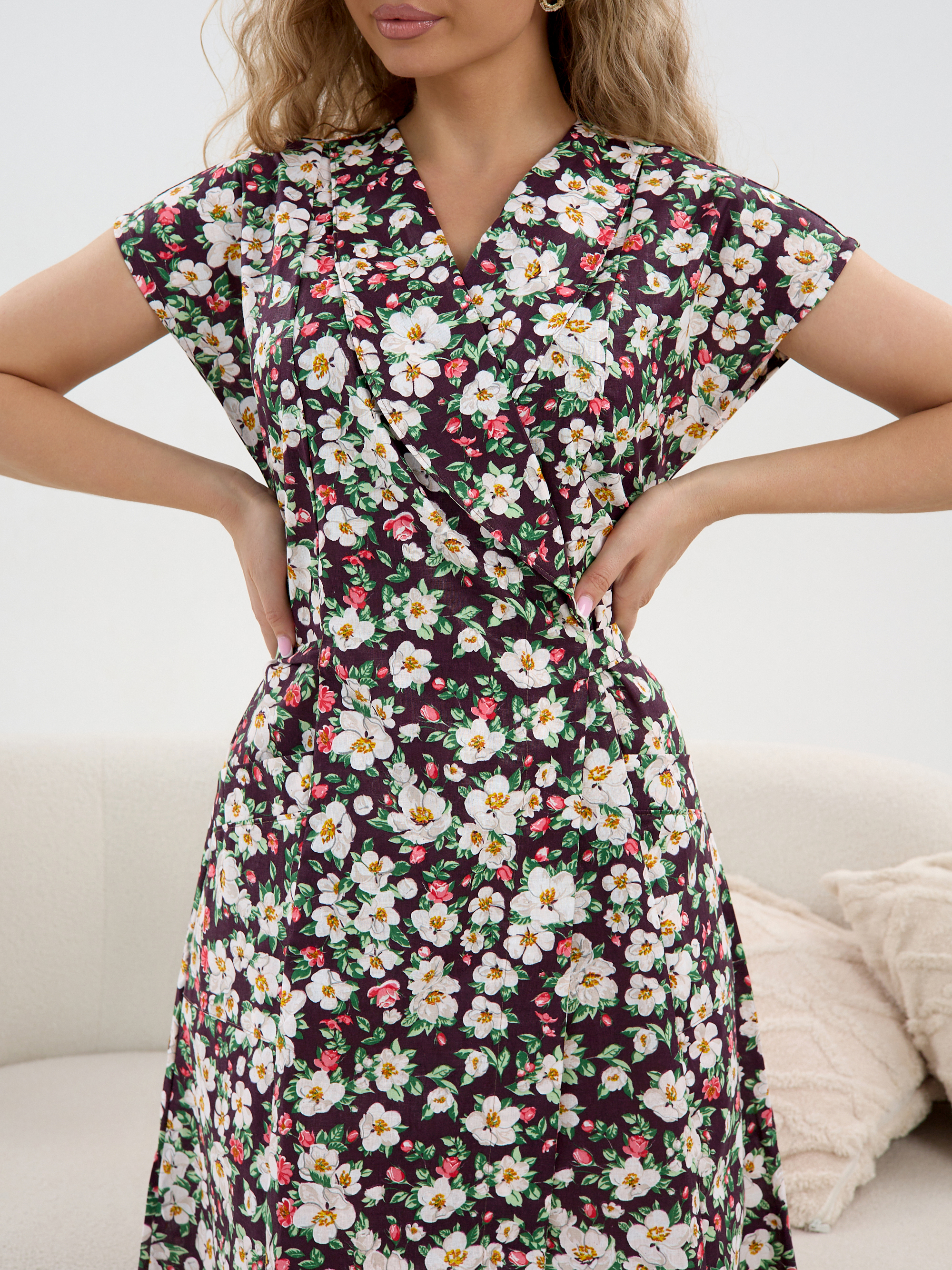 Халат домашний бязевый от компании Лето-Текс, выполнен из натурального хлопчатобумажного материала из бязи - 100% хлопок. Ткань бязь изначально жесткая, после стирки становится мягче. Халат женский на запах с накладными карманами и спущенным плечом. Халат запашной ниже колена, рост модели на фото 165 см., а ростовка халата 170см. Достоинствами такого халата для дома являются его экологичность и безопасность, он не вызывает аллергии, кожа в нем дышит, а влага впитывается. Домашний халатик отлично подойдет для дома, надеть с утра или после ванны, не сковывает движений и отлично сидит по фигуре и подчеркивает талию. Халат летний женский длинный с коротким рукавом подойдет для беременных роддома, для кормления грудью, для кормящих мам. Халат больших размеров хороший подарок на день рождения 8 марта для мамы и бабушки. Халат рабочий отличный вариант для дачи и в качестве униформы.