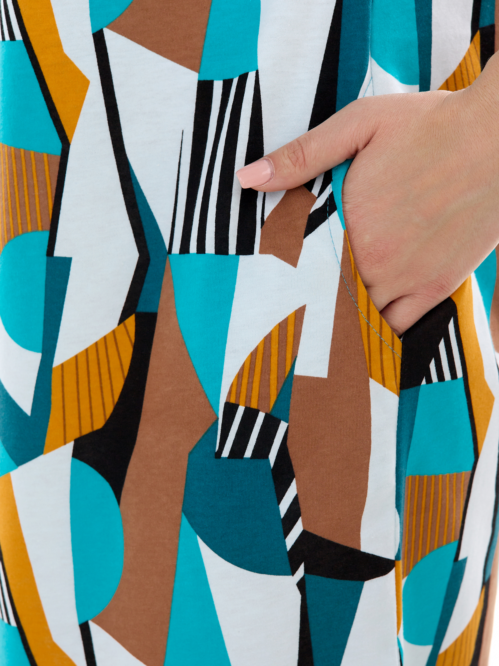 Изделие подходит для отдыха на пляже, для поездок на море, прогулок, домашнего использования и даже как элемент повседневного гардероба. Основа белого цвета легко сочетается с аксессуарами любого стиля, а длина до колена делает образ женственным и актуальным в любой сезон, особенно летом. Приятная к телу ткань и свободный, широкий, обеспечивает свободу движений, а прочный трикотаж придает изделию износостойкость.